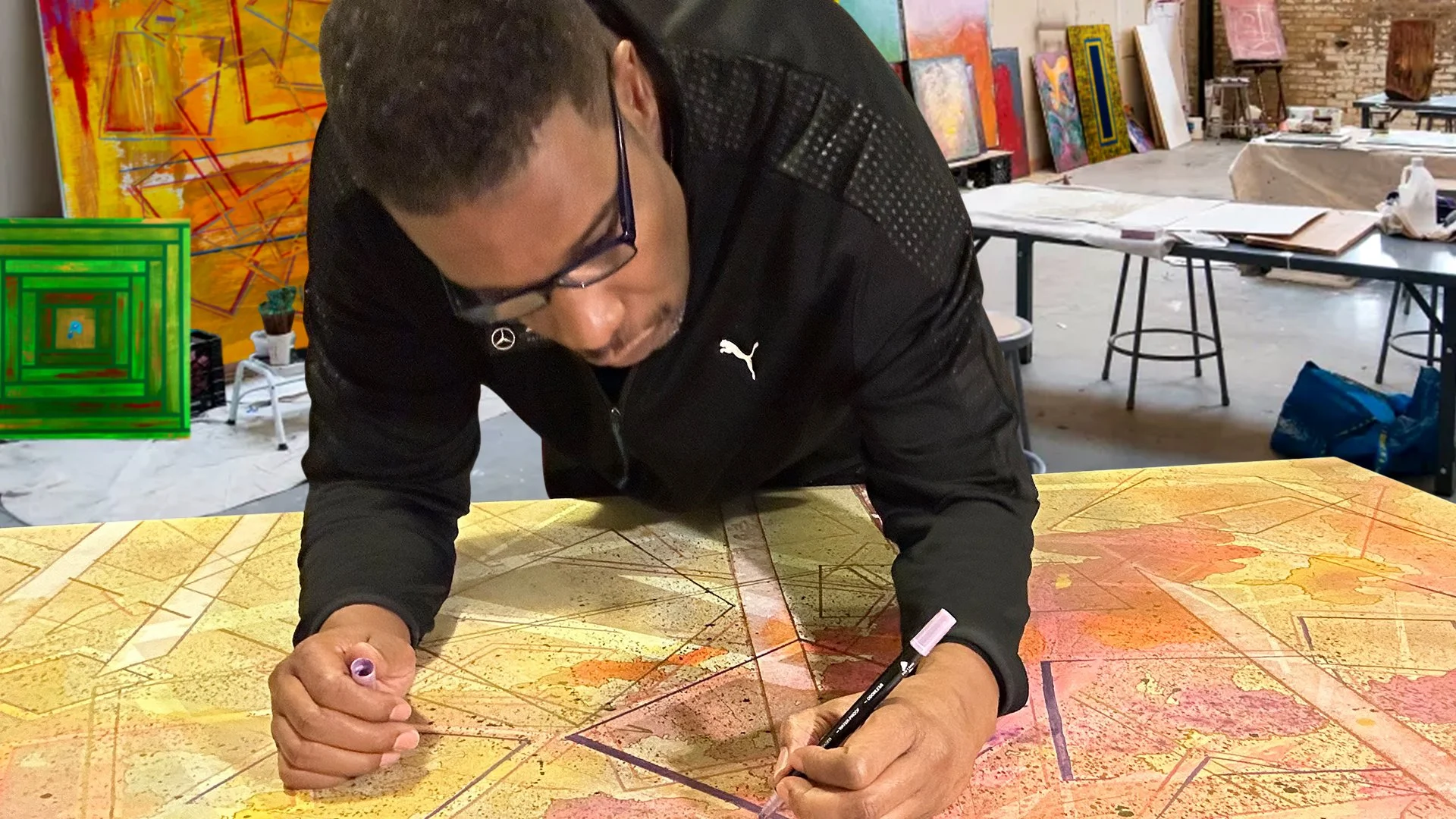 Langston Hudson discovered a passion for art early on, developing a freestyle technique rooted in intuition and emotional expression. Deeply influenced by music, his work spans pencil, ink, pastel, and acrylic mediums, creating vivid expressions of authenticity and innovation.
